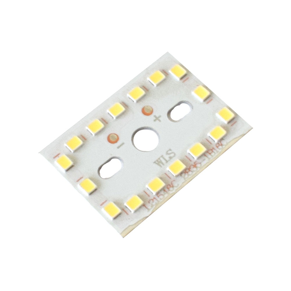 Its 15W White 38mm x 27mm Metal Core LED PCB, shape is rectangular; Polarity has marked on this PCB. Its power is 15W, and The no of LEDs is 16. Its colour is white.