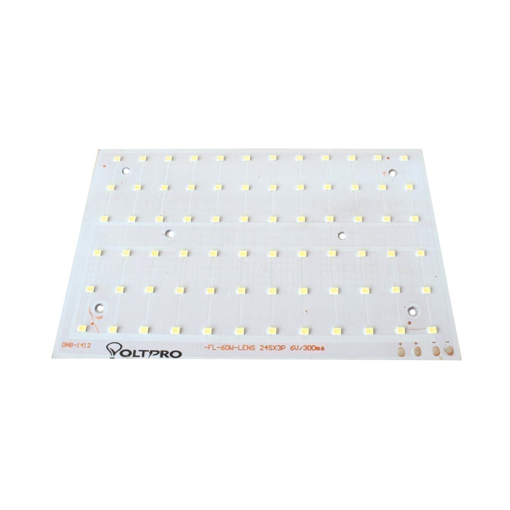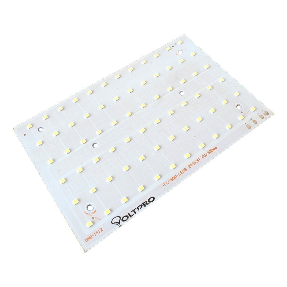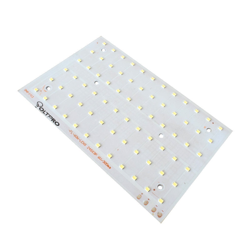 Its Lens Model 60W Warm White 170mmx110mm Metal Core LED PCB shape is Rectangular; Polarity has marked on this PCB. Its power is 60W, and The no of LEDs is 72. Its colour is Warm-White.