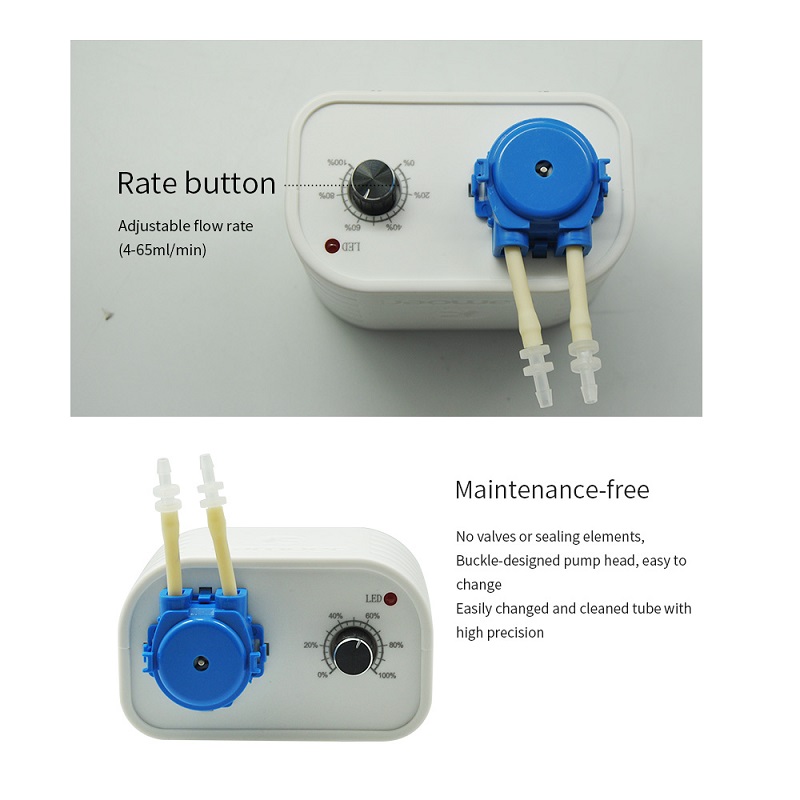 When pumping liquids and no direct contact with the liquid is required, the all-new range of peristaltic pumps from kamoer offers a simple solution. Unlike most pumps, the NKCP series pumps come in a plastic enclosure with the speed controller to adjust the flow rate of the pump, which squishes a silicone tube to produce the pump-action instead of impelling it directly, thus no direct contact with the liquid. This pump requires a 24 V DC supply and can produce a flow rate up to 17-50ml per minute.