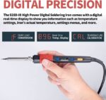 This soldering iron heats up quickly with a 110W ceramic heating element, and the digital display shows numerical temperature settings. You can adjust the temperature precisely from 194~896°F via the digital encoder buttons, and turn the iron ON or OFF using the built-in power switch.